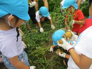 年中さん・年長さんはさつまいもも植えています。