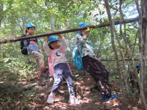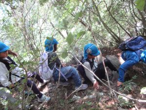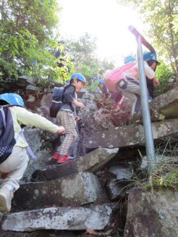「竜の背」と呼ばれる岩の道を登り、みんなで励ましあって、最後まであきらめずに登りました。