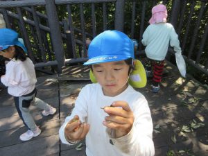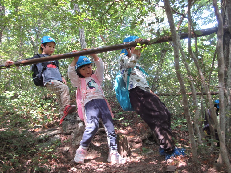 たくさんの山の恵みを見つけたり、落ち葉でふかふかの山をかけまわったり、みんな元気いっぱい離山を楽しみました。