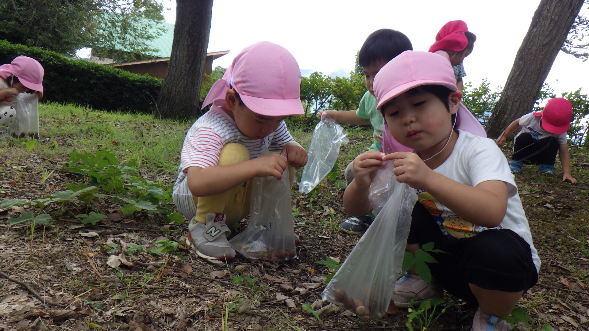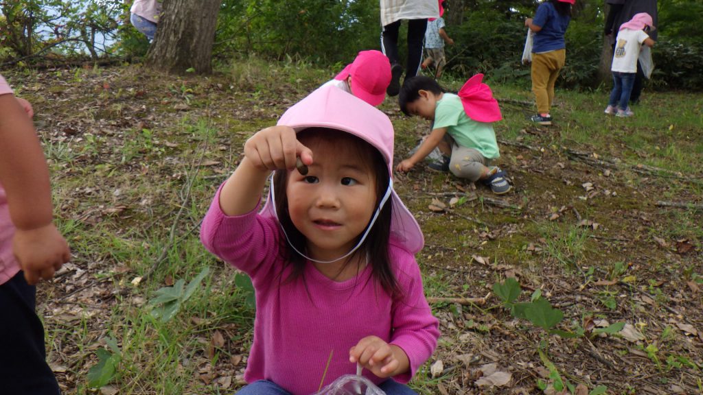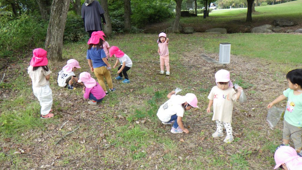 袋いっぱいに集める子や、きれいなどんぐりを選んで袋に入れていく子などいろんなお友達がいました。