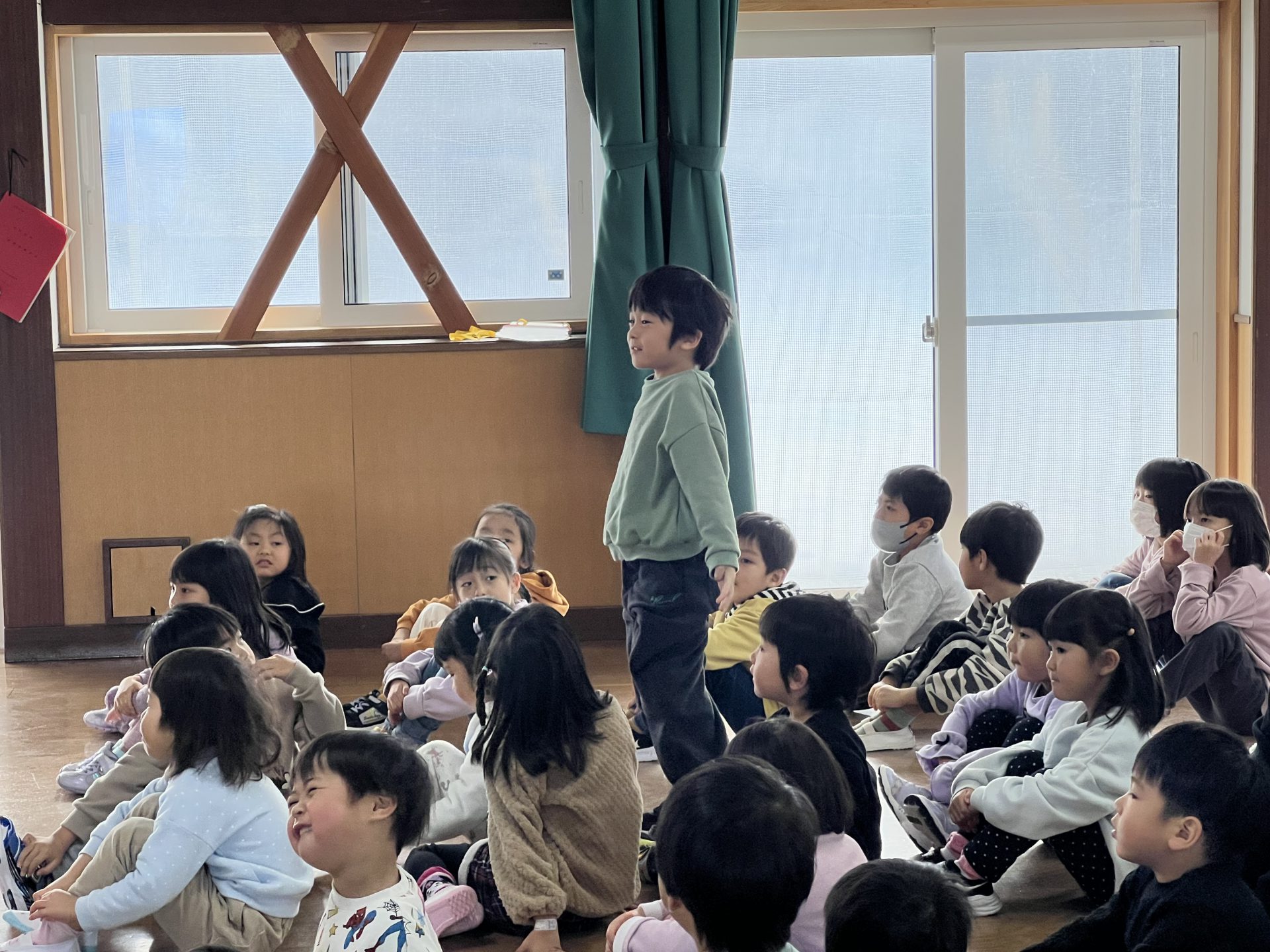 質問タイムでは【好きな果物】【好きなおもちゃ】を緊張しながらも皆の前でお話しました。