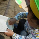 園庭で遊んでいると、いろんな虫と出会います。チョウやアリ、ガガンボ、ダンゴムシなど…