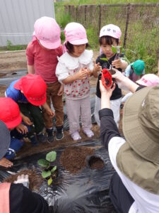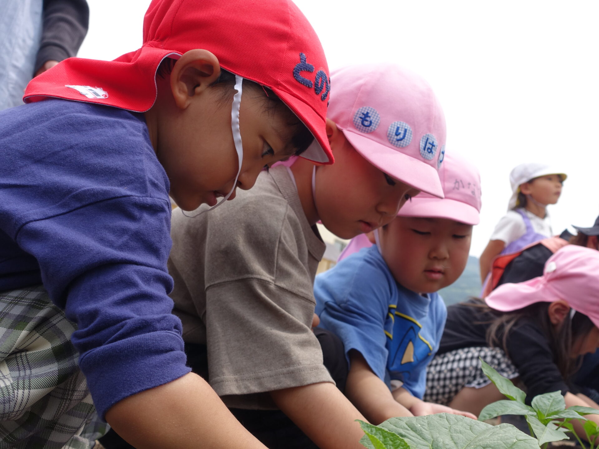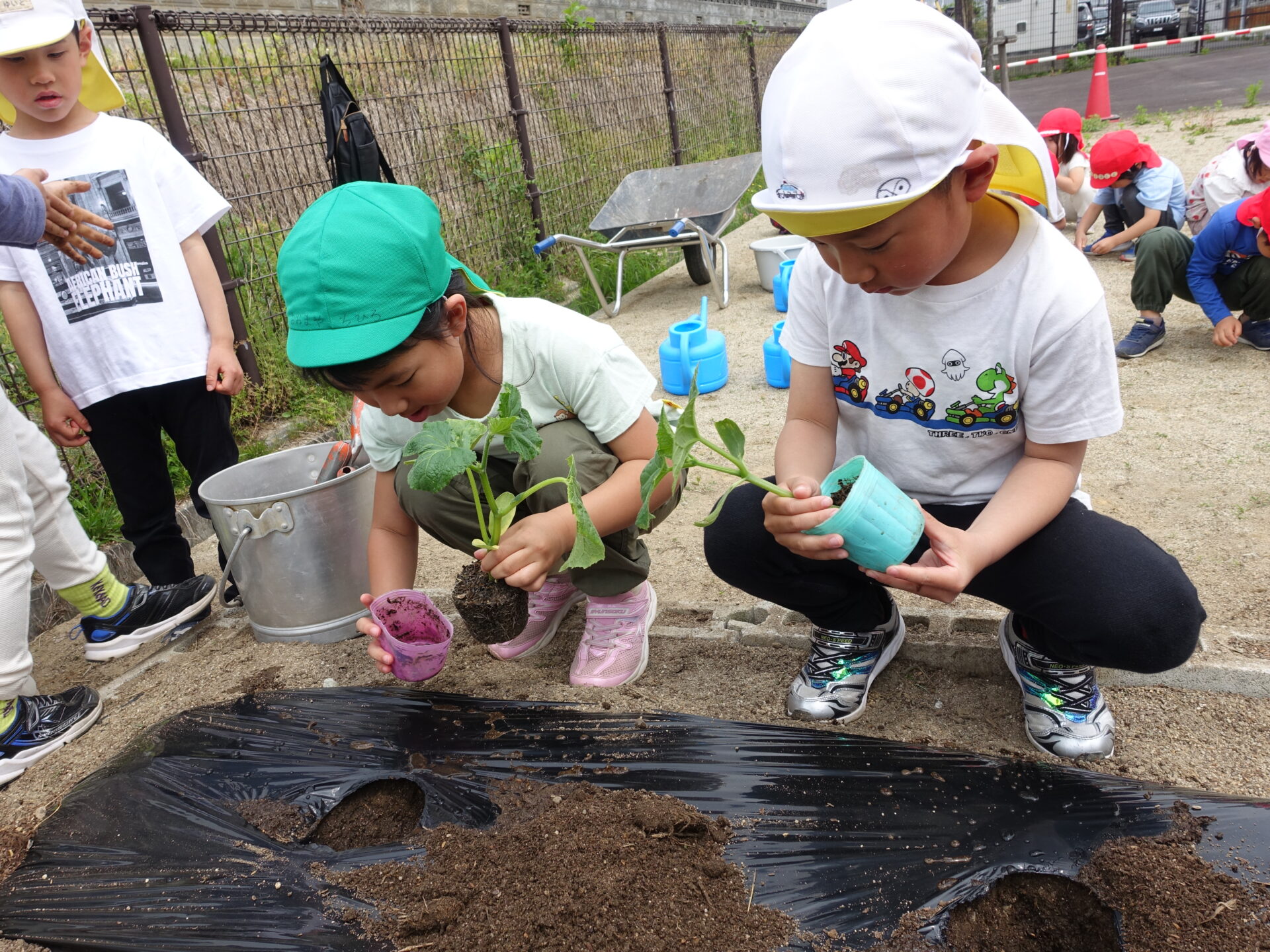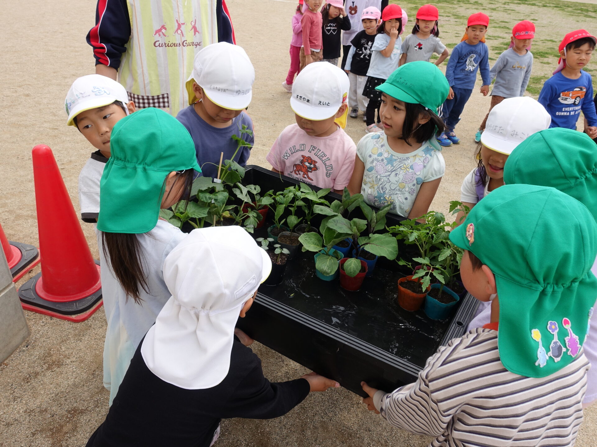 年中児さんたちは、年長児さんのする姿をみて「わたしも植えた〜い!」と楽しみで仕方がありません。