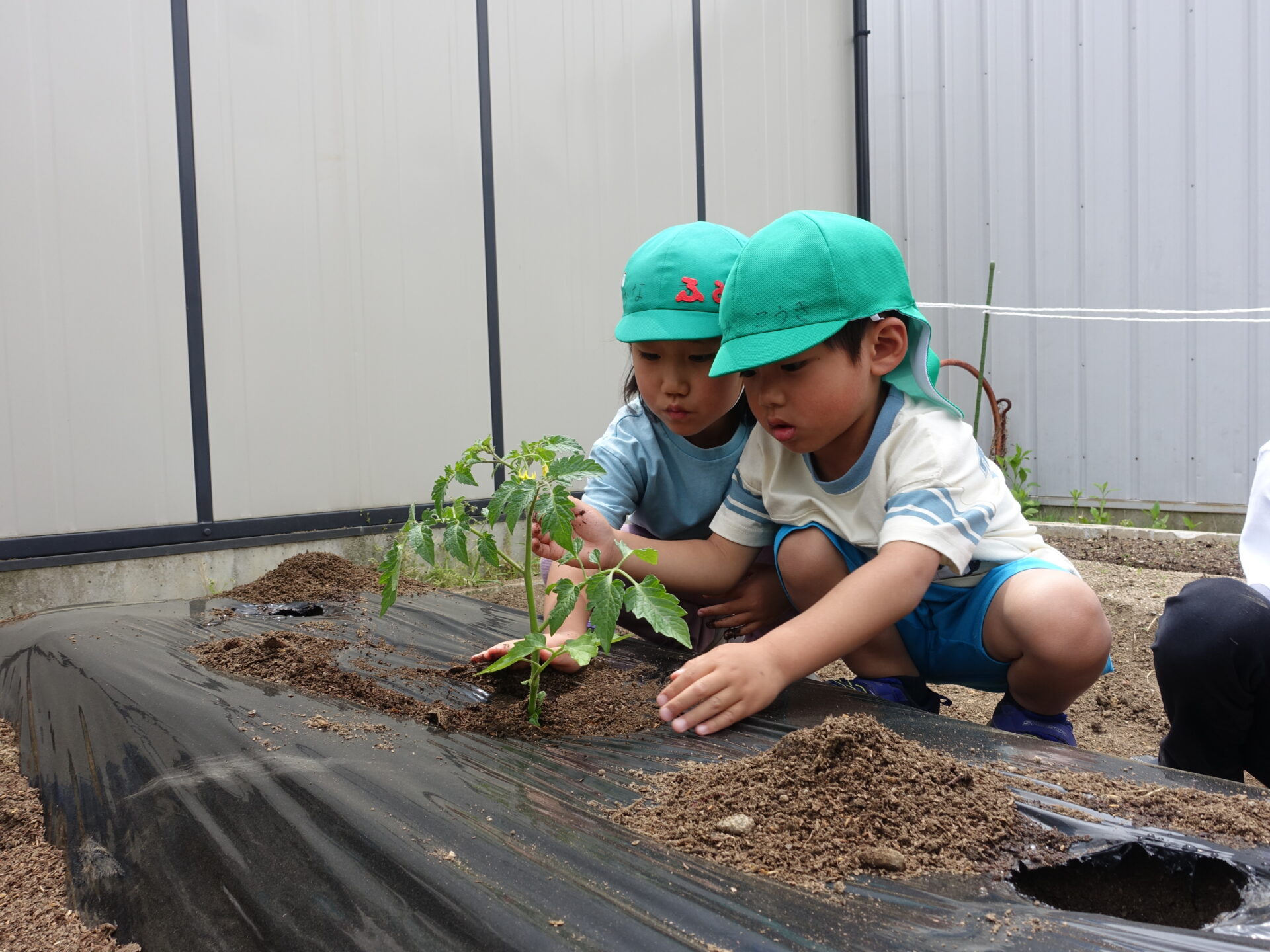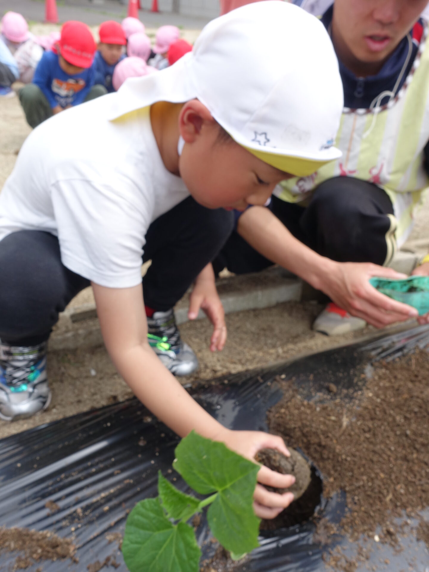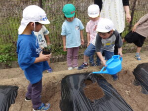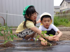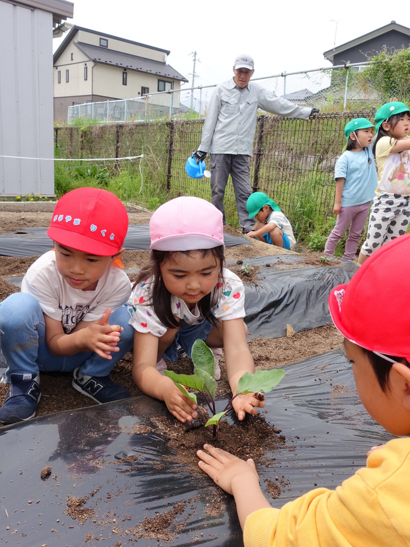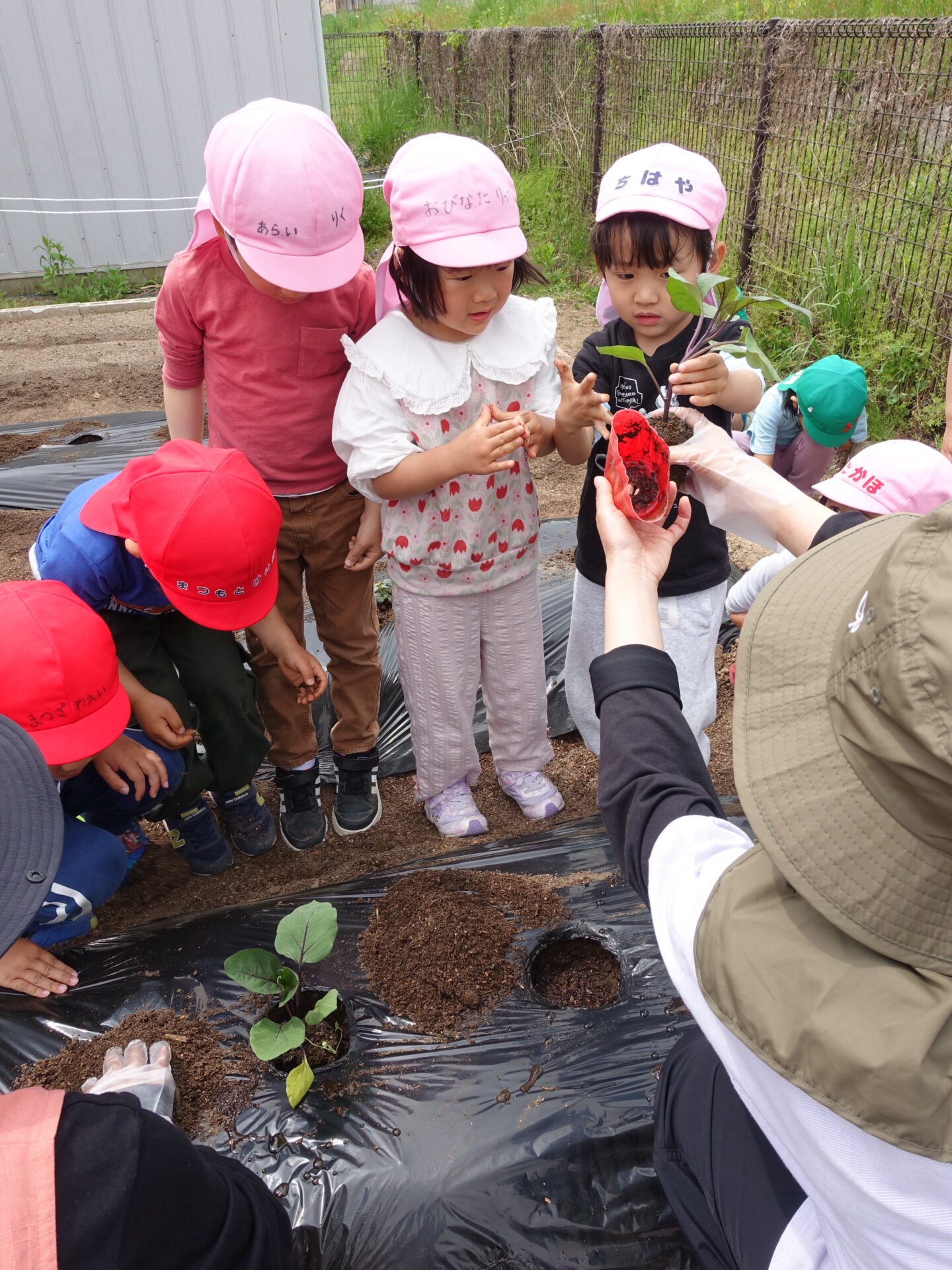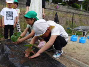 年中児さんも、年長さんのように一生懸命苗を植えてくれました。