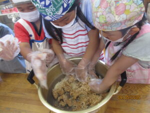 豆からみそができる工程を体験した子ども達。発見がいっぱいありました。