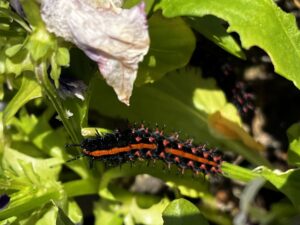 ツマグロヒョウモンは、パンジーやビオラしか食べません。あっという間に、保育園に咲いていたパンジーやビオラは茎だけになってしまいました。そして、ツマグロヒョウモンはすくすくと大きくなっていきました。どうしよう・・・