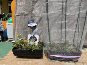 そこで、2つのプランターを防虫ネットで囲んでその中で育ててみることにしました。