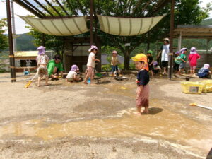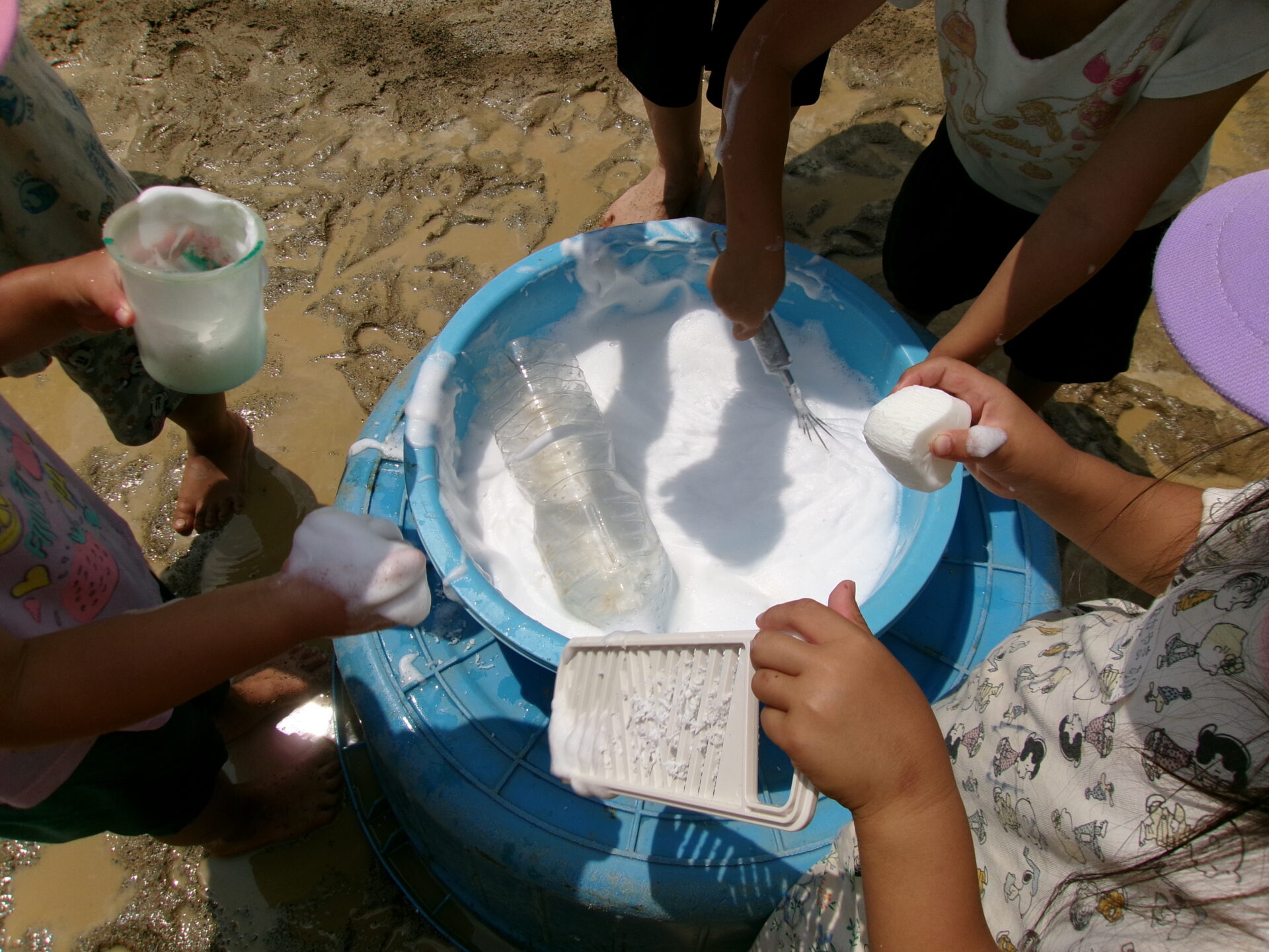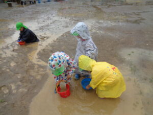 泥んこ遊び、大きいお友だちも小さいお友だちもみんなで遊ぼう!