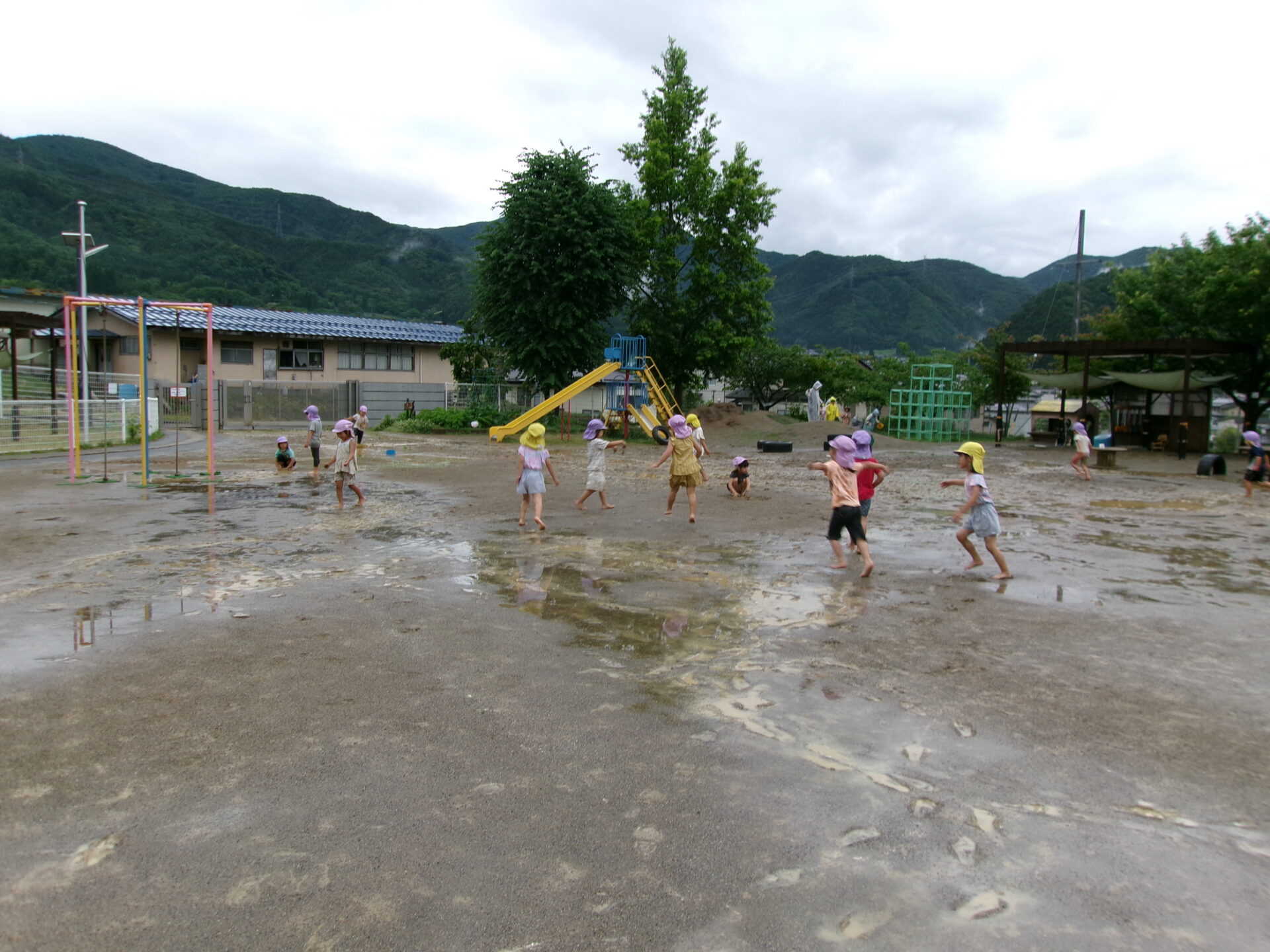 こんなに水たまりがある~!嬉しくって走り出しちゃう子ども達。