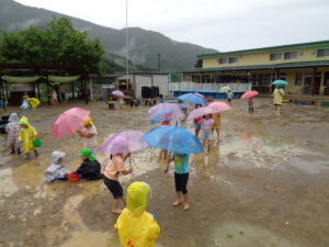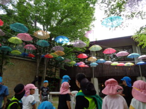 みんなで傘をさして探検に出かけよう!傘から見える景色はいつもと違うよ~