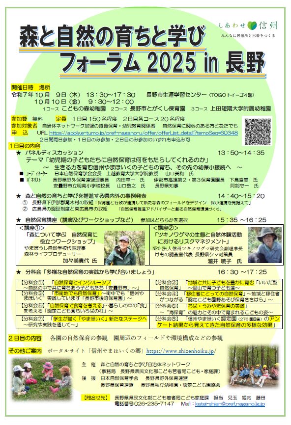 〇 【開催要項】はこちらから 【開催要項】 森と自然の育ちと学びフォーラム2025in長野(