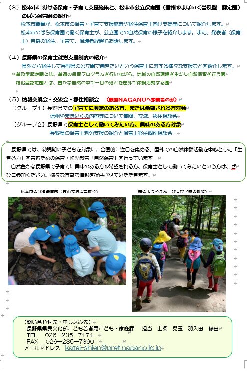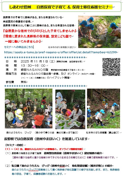 しあわせ信州 自然保育で子育て& 保育士移住応援セミナー
