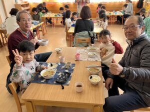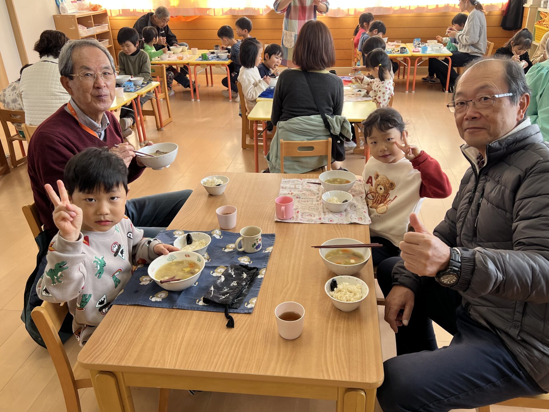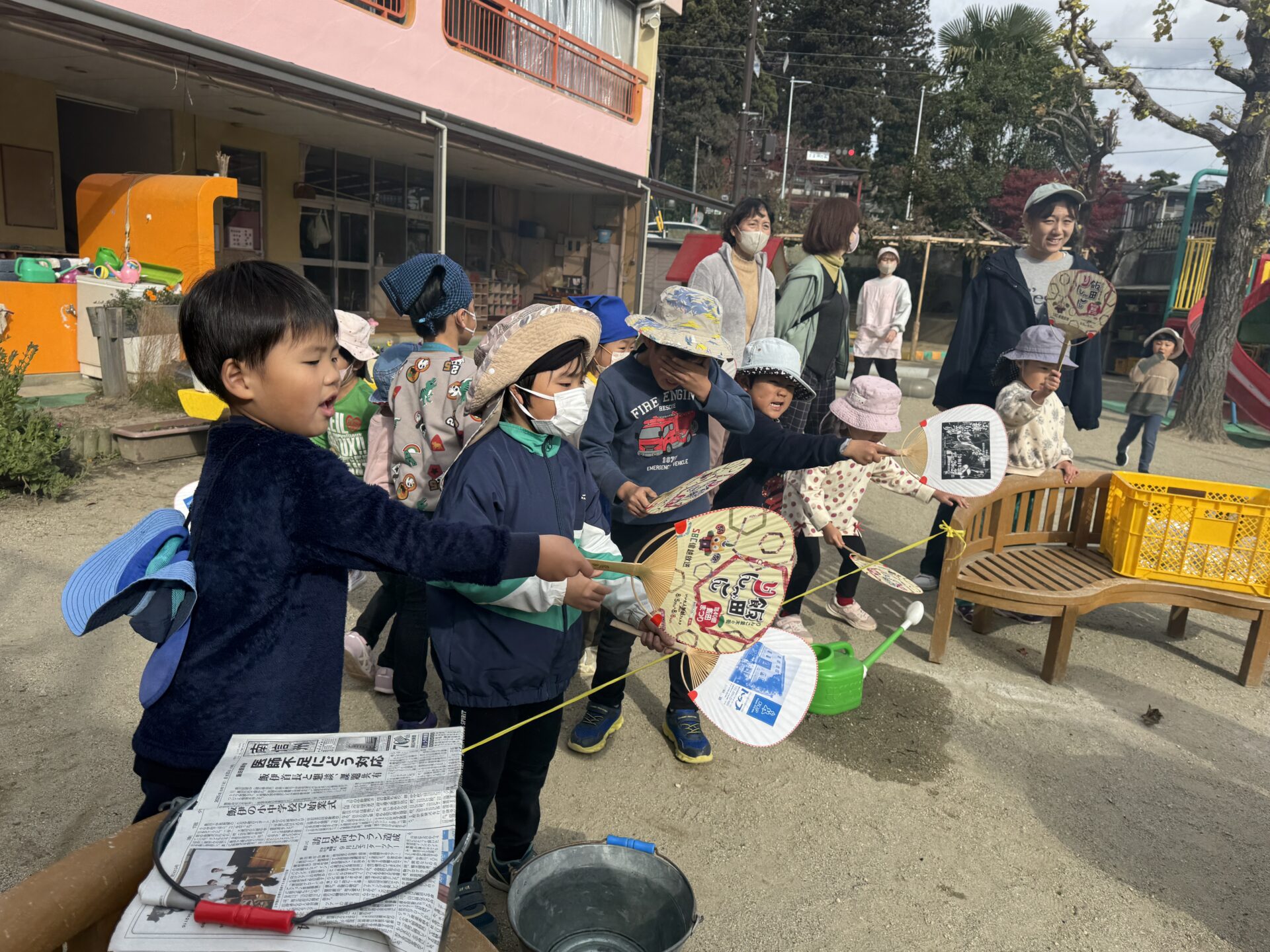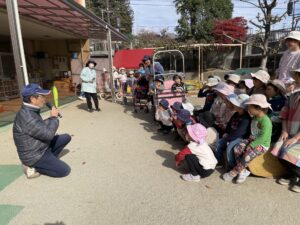 待つ間に、地域の方からのお楽しみも。用意してくださったペープサートとともに、『手のひらを太陽に』を園の皆んなで楽しく歌いました♪