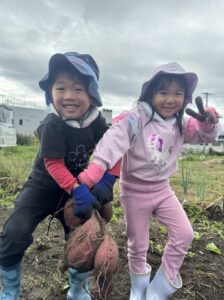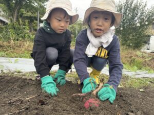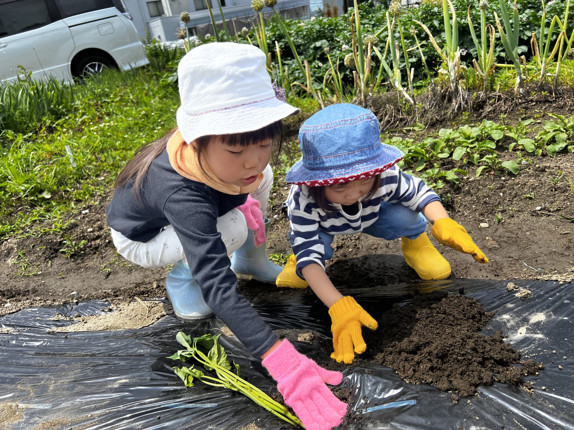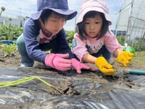 「いつとれるの?」「焼きいもしたい!」「早く食べたいね」「大きくなるかな」とすでに期待いっぱいの子どもたち。