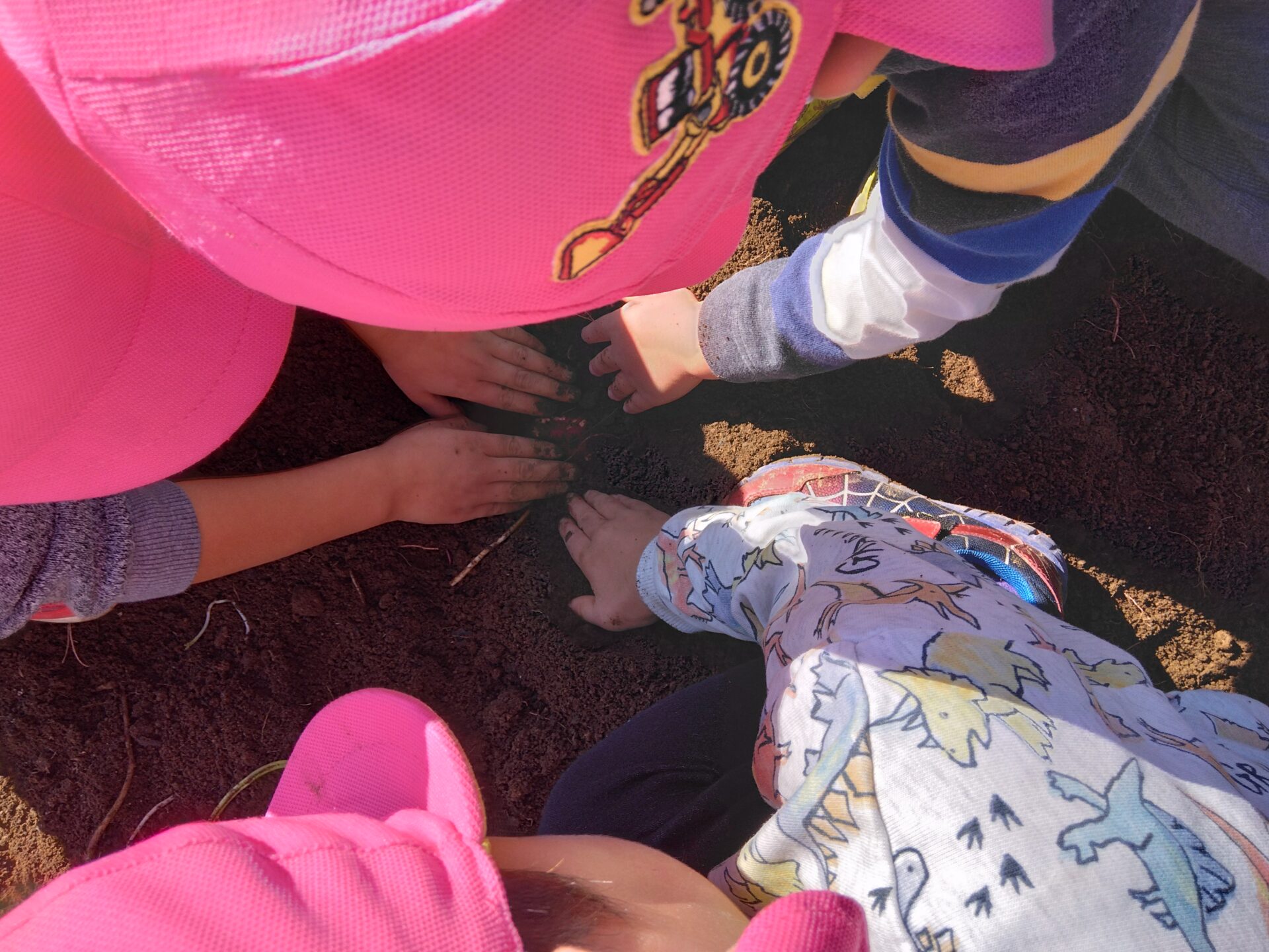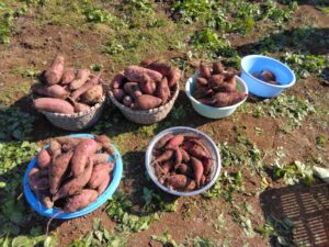 芋掘りの体験を通して「友達と協力して同じ目標に向かって活動し、達成感を味わう」「土に触れ、硬い、柔らかい、冷たいなど様々な感触を楽しむ」「芋の大きさや重さを感じ、比べる」といった、様々な経験が出来ました。