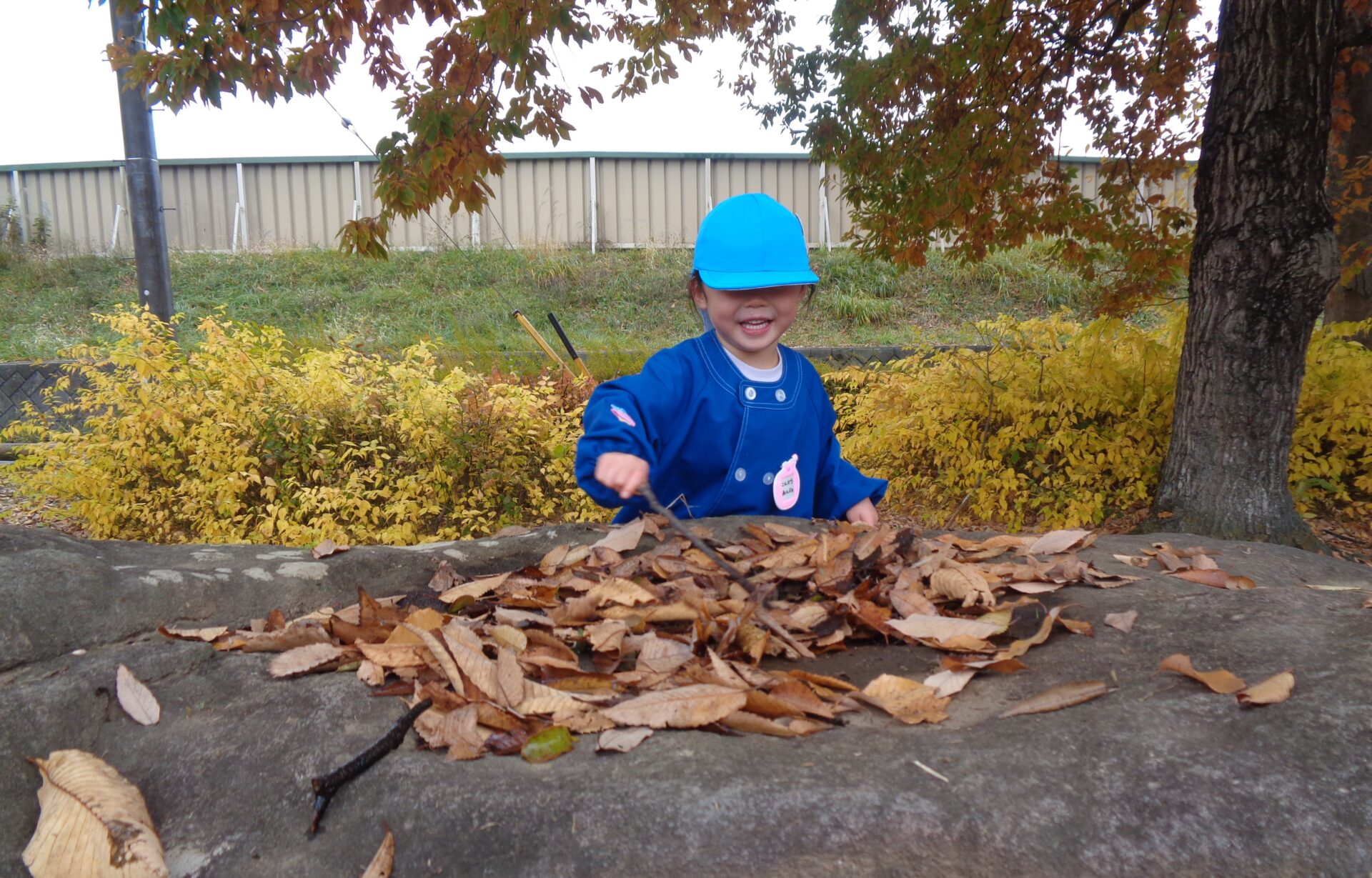 秋の自然物を見つけて収穫したり、遊びの中に取り入れたりして自然を満喫して遊びました。