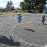 さつまいものつるで遊ぶこどもたち。