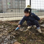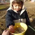 「音がするね」「これなに~?」と興味津々で霜柱を触っています。