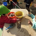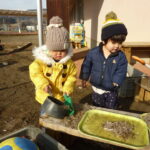 霜柱がたくさん集まるとおままごとが始まりました。ごはんやジュースに見立てたり霜柱のケーキを作ったりと冬ならではの遊びを楽しんでいました。