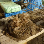 熊手とシャベルを持ってお庭中を歩いて霜柱探しに出発!バケツやお鍋いっぱいに霜柱を見つけて見せてくれました。