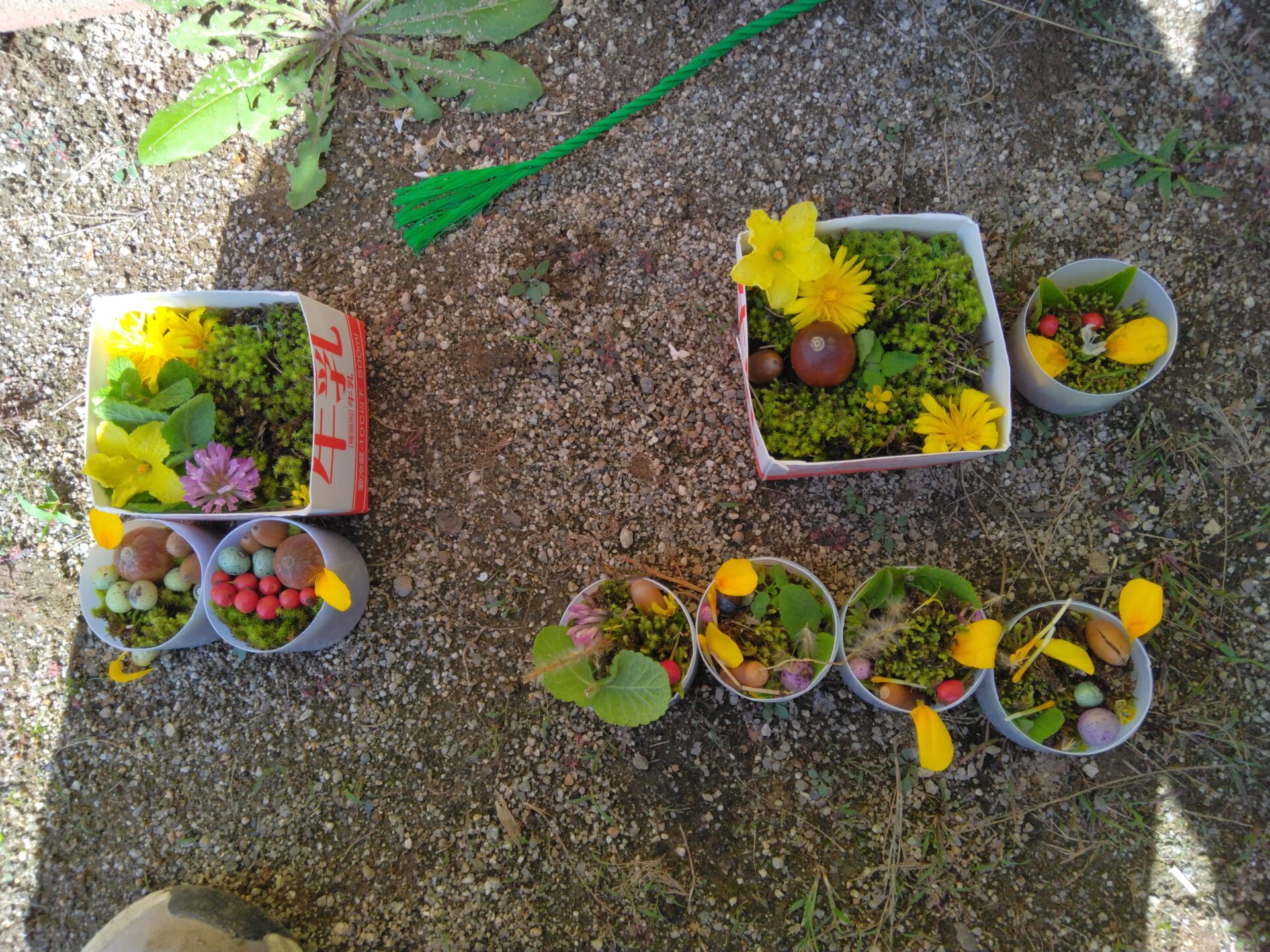 そこでヤクルトの容器や牛乳パックを切ったものを用意しました。