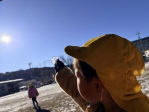 お日様の光に当てて「きらきら氷になった!」と輝く氷に夢中!