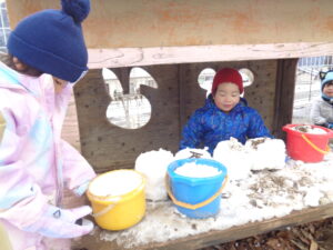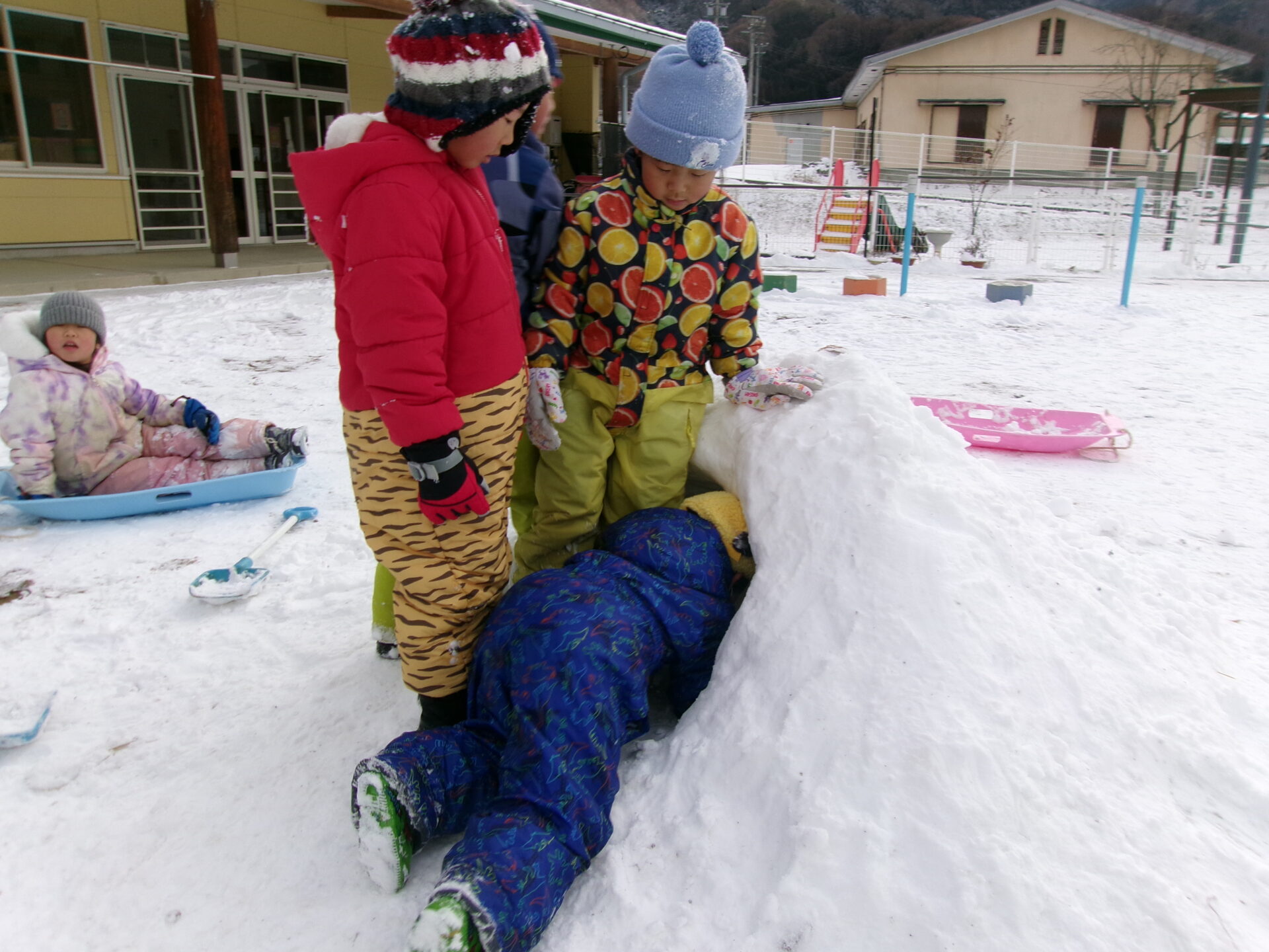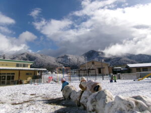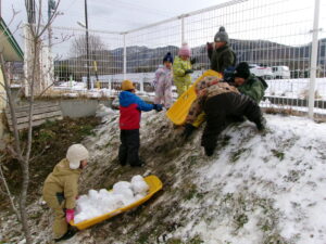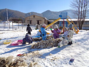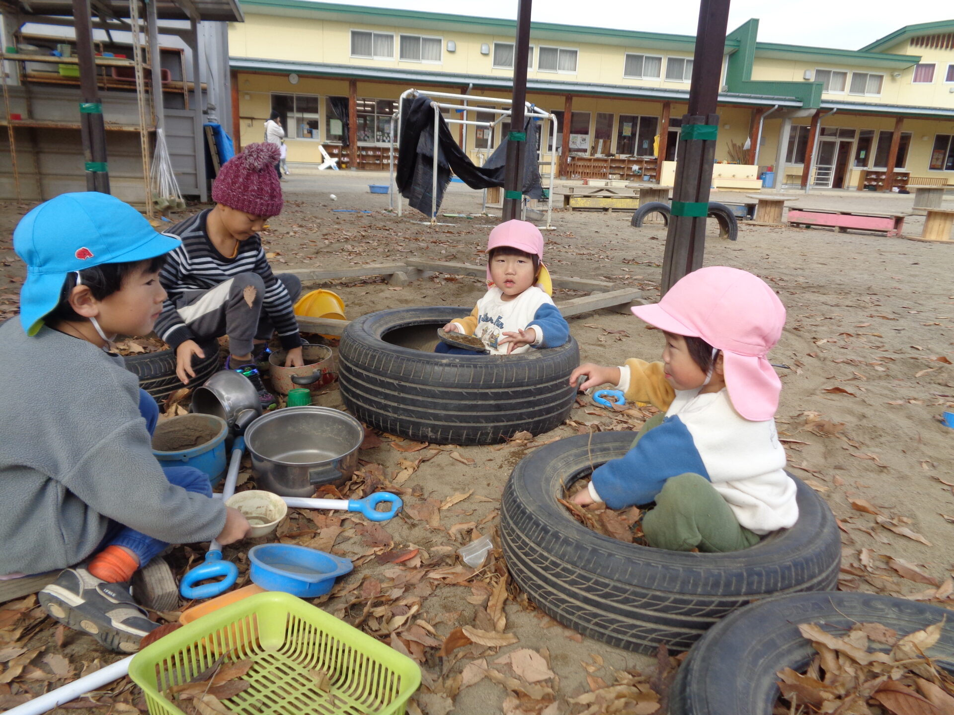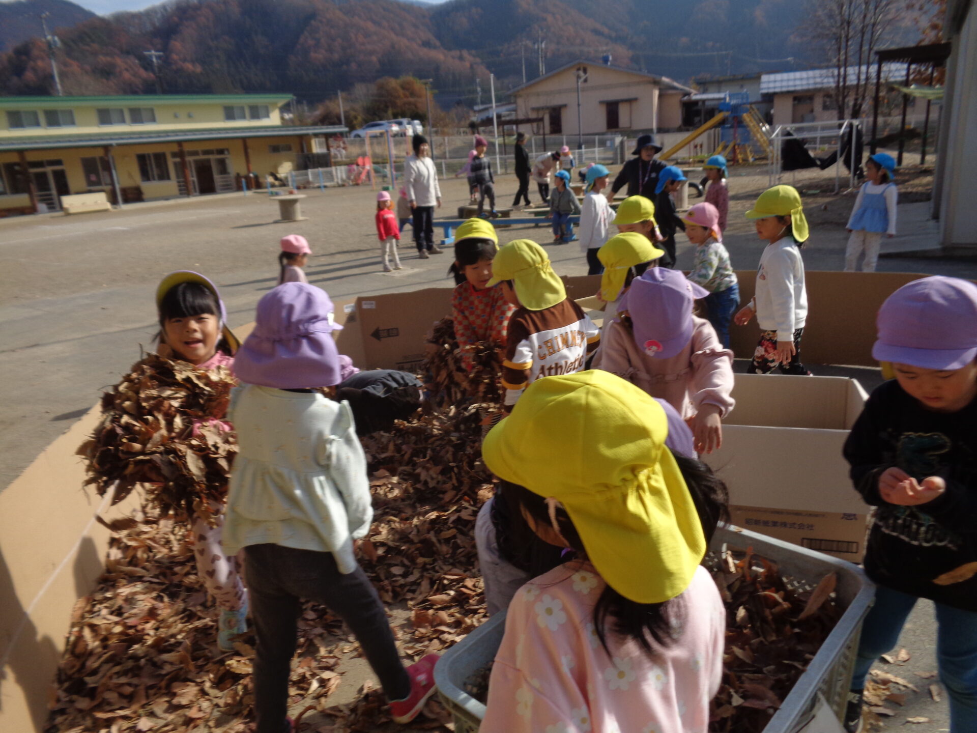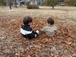 そんな季節を楽しむ子ども達は落ち葉を集めて、良いことを思いつきました!落ち葉の温泉ってステキじゃない?みんなで入ろうよ!