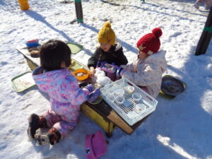 そして、もうすぐ卒園の年長さんと“おわかれ焼き芋会”もしました