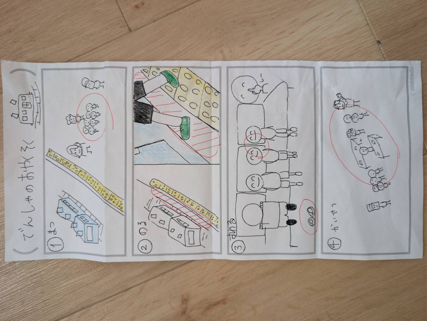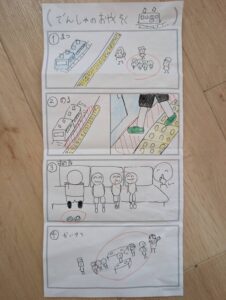 まず、視覚的コミュニケーションを使って、電車に乗るときの注意点を説明します。