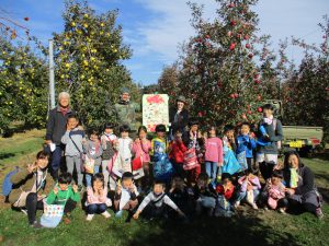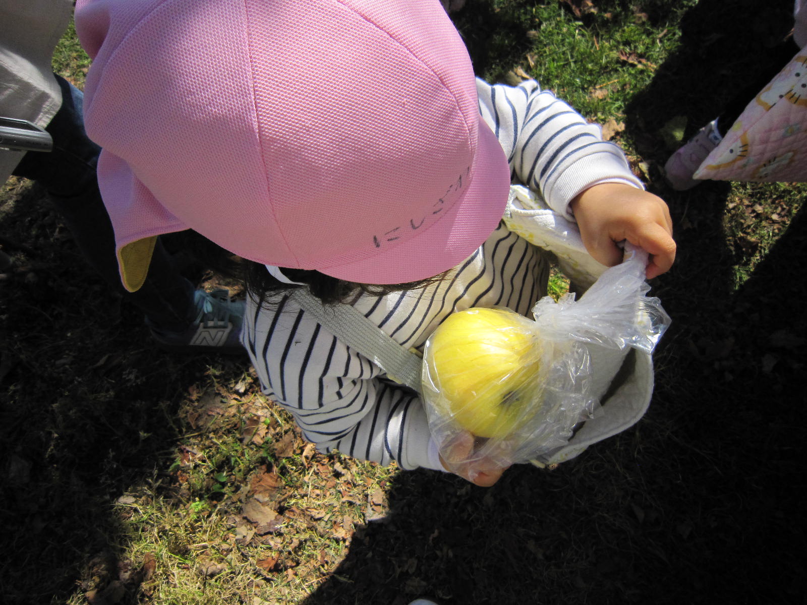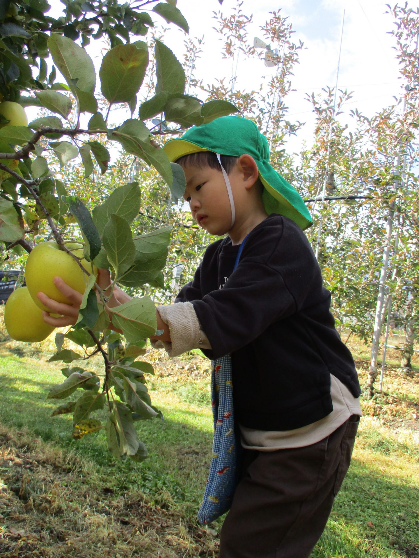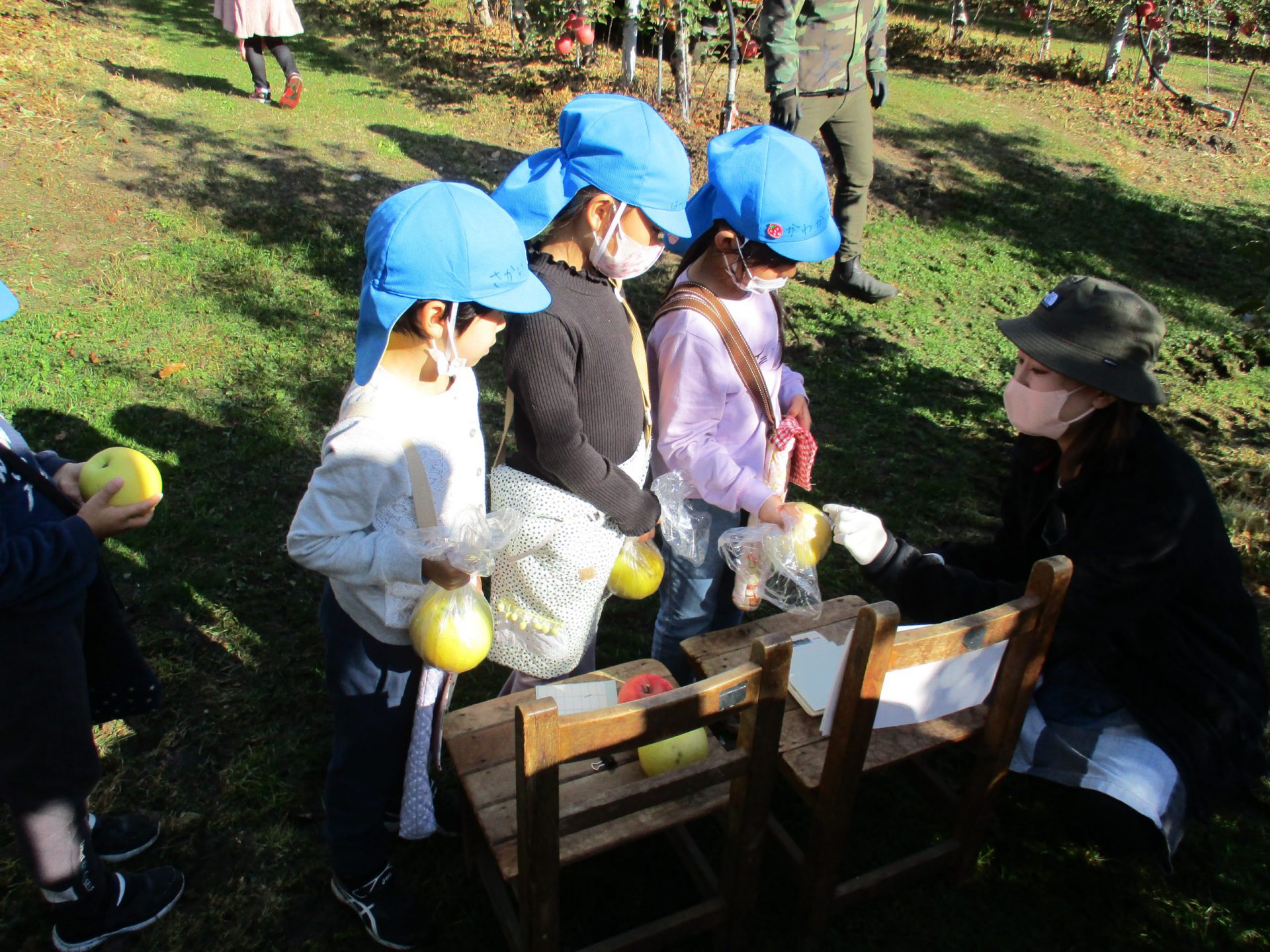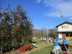 春から、散歩を通じてりんごの木の成長を見てきた子ども達。