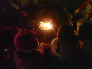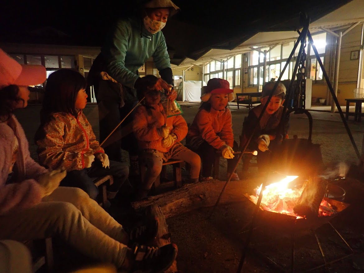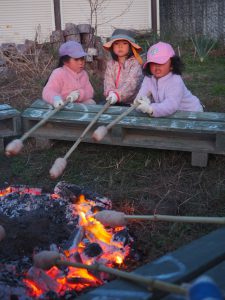 お宝は、マシュマロ!暗い中で焼くのが難しい。