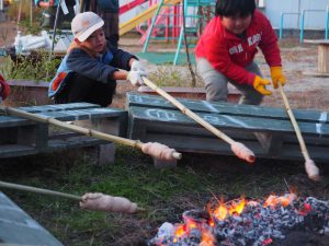 星を見ながら焼いた焚火パン。全員のパンが焼けたところで