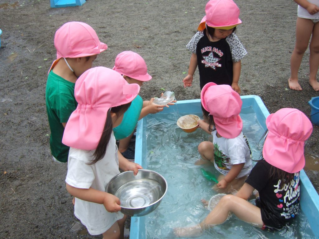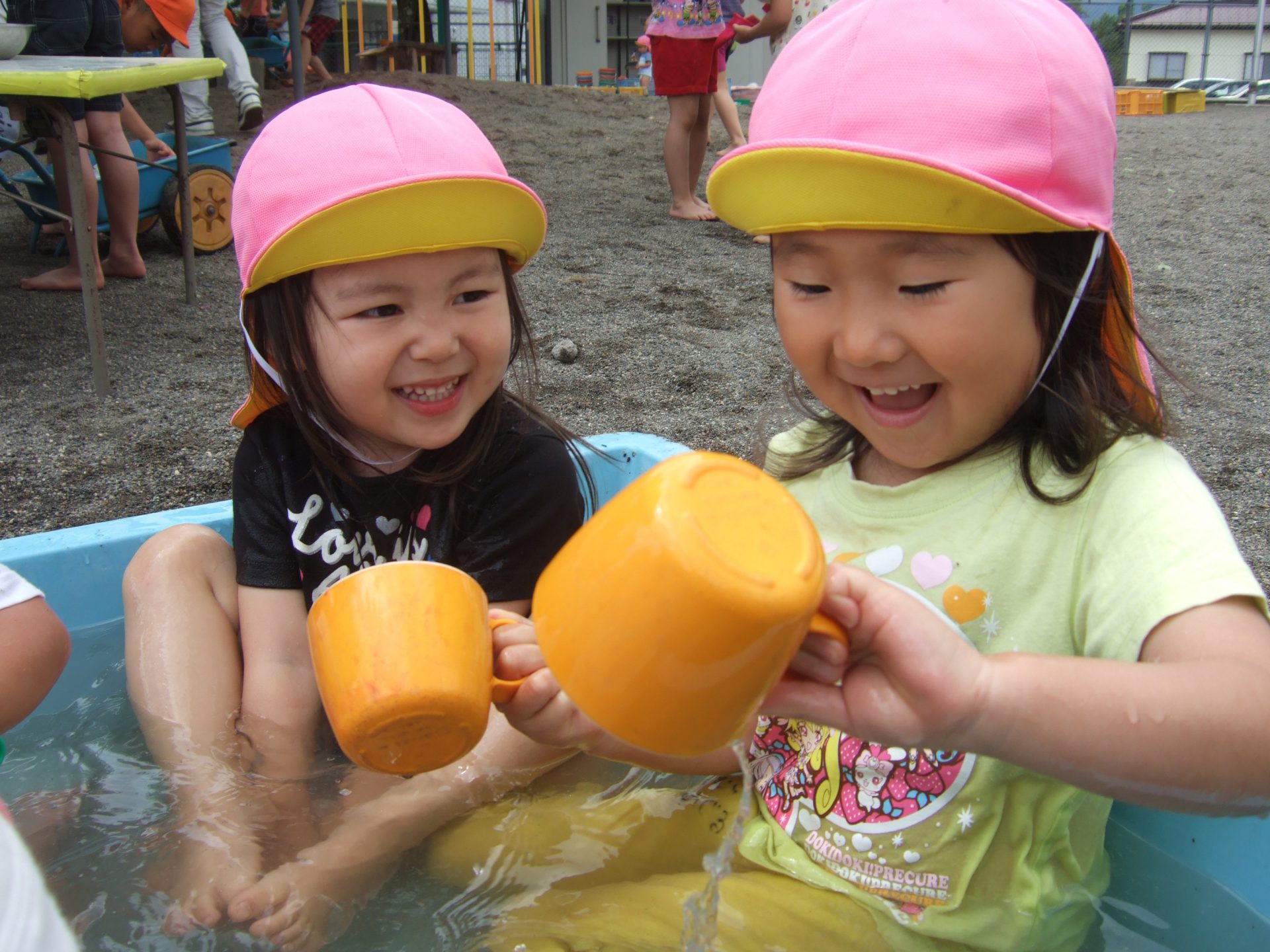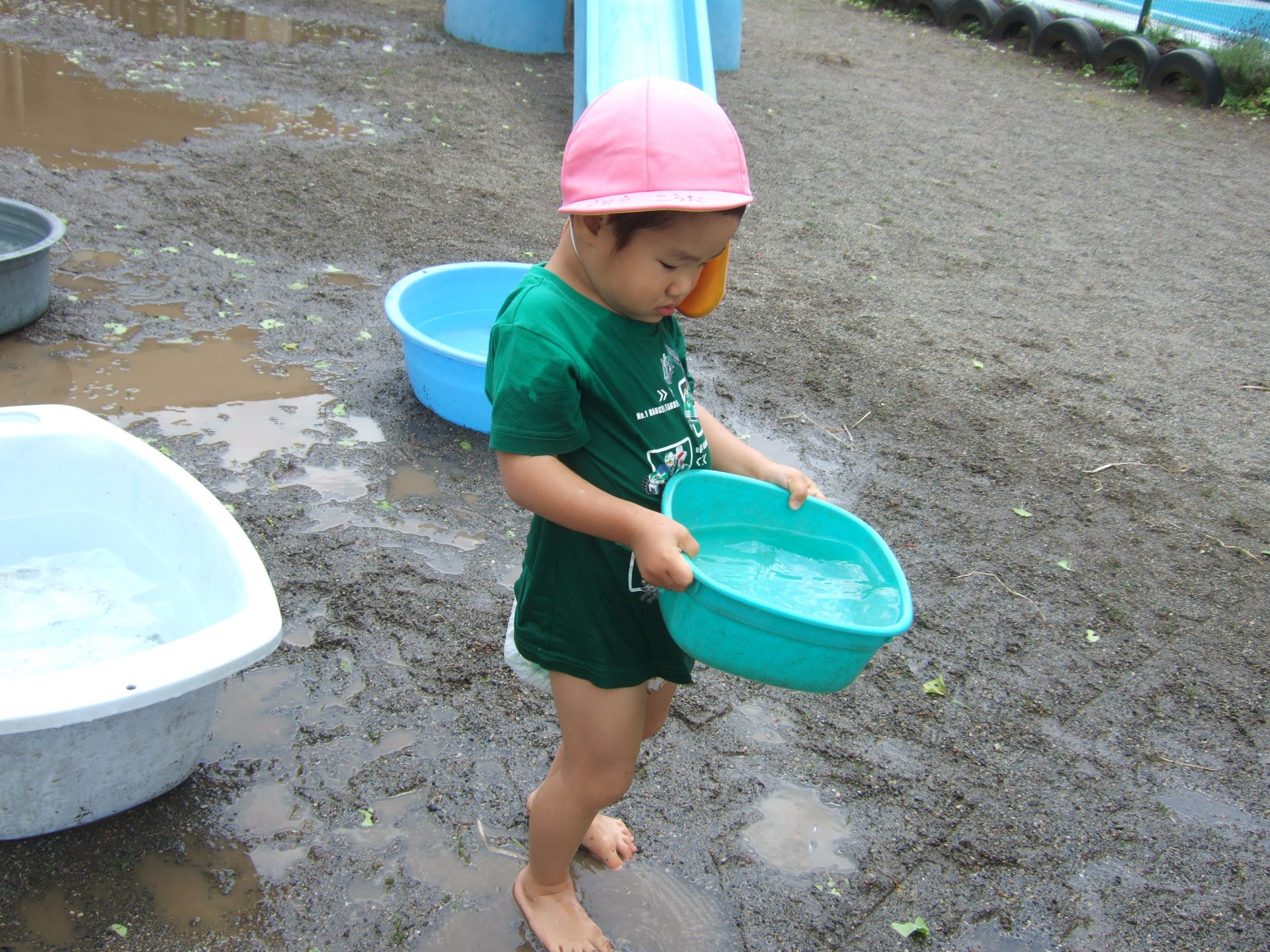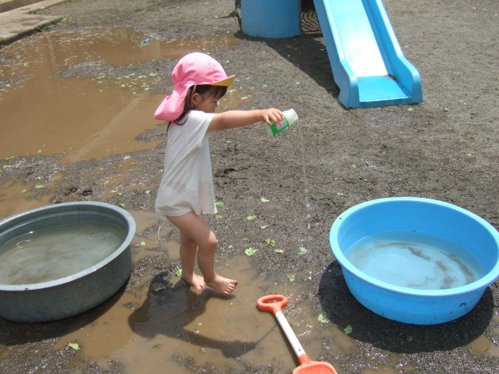 水の入ったたらいのそばで遊ぶお友達を見てみると、、、