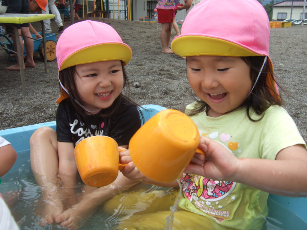 「お風呂だね」「気持ちいいね」とお友達とお話しながら楽しむ姿も見られました。いい笑顔!
