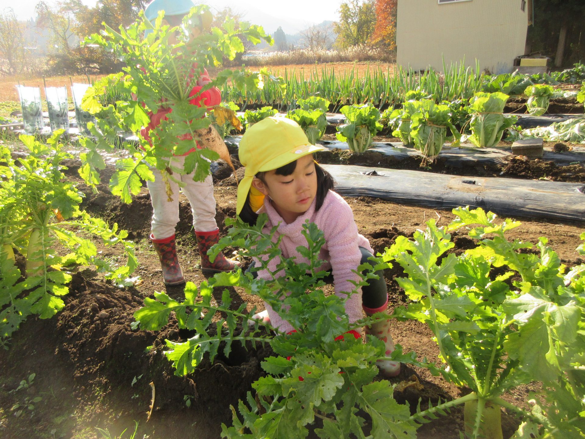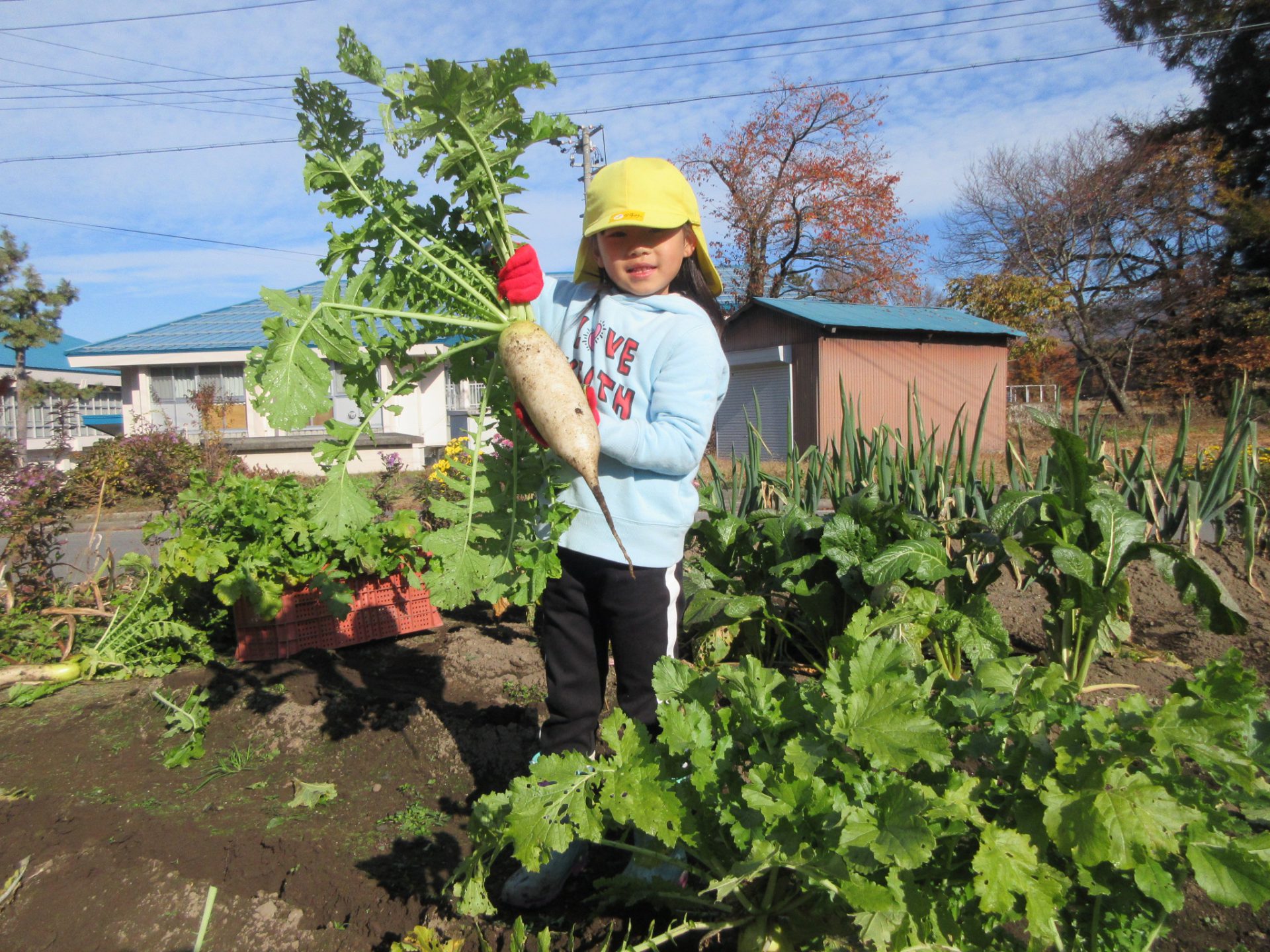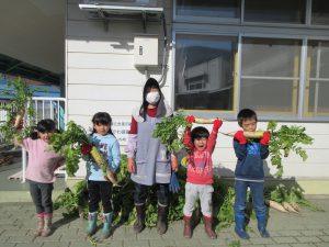 〇地域の方の畑をお借りし、種まきから収穫まで園児と一緒にかかわって下さった事に感謝し、一緒に収穫の喜びを味わえた。
