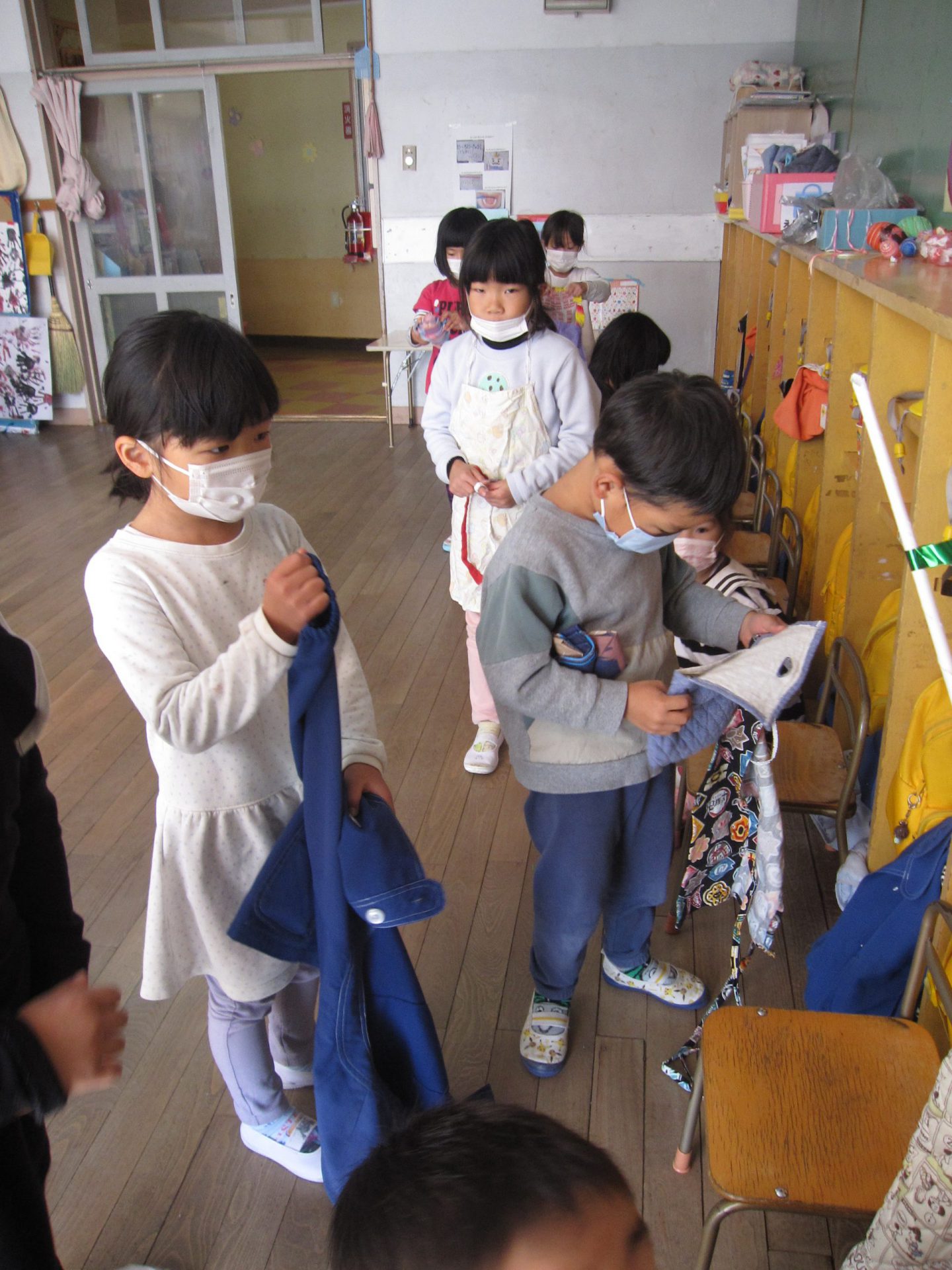 たくさん収穫できた🍠さつまいも。焼きいものほかに「子どもたちが体験できて食べられるものは」ということで、給食の先生がスイートポテトを提案してくれました。甘い種類の🍠さつまいもだったので砂糖の量を控えてもかなり甘みがあり大好評でした。小さい組さんは甘いにおいだけでごめんなさい。今回は、「ビニール袋に材料を入れて混ぜホイルカップに入れ、焼いてもらう」でしたが、🍠さつまいもに水分(ねっとり感)がありひとまとめにしアルミカップに出すのに苦労しました。そこは絞り出したらいいのでは・・ということに。また、甘味はどうか?大きさは?今回の試作をもとに、保育園のみんなに食べてもらえるよう、もう一回挑戦するようです。保育園のテラスには、収穫時に作ったカラカラになってきたさつもいもの茎のリースが並んでいます。あっ、お散歩からおひさま組さんが帰ってきました。近くの公園で見つけたたくさんのどんぐりやまつぼっくりと色づいた葉っぱたちをお散歩バッグにいれて。どうやらリースの飾りになるようです。次から次へと楽しいことや美味しいこと😋を考えている先生たち。保育園周辺の豊かな自然の恵みやこの時期ならではの遊びを思う存分みんなで楽しみましょう。