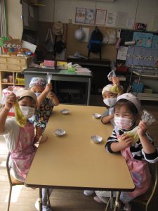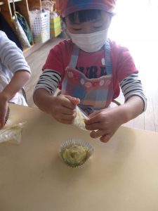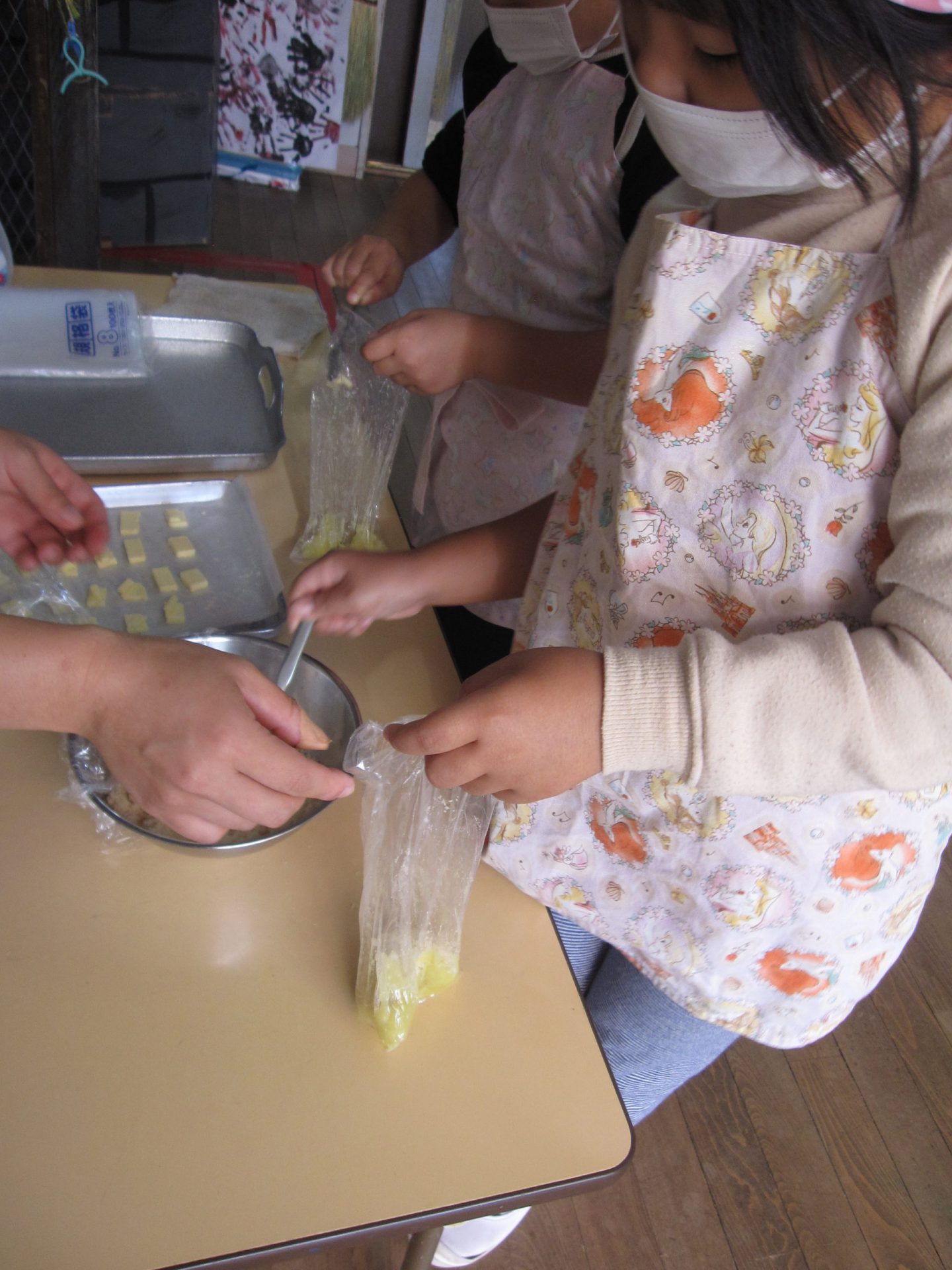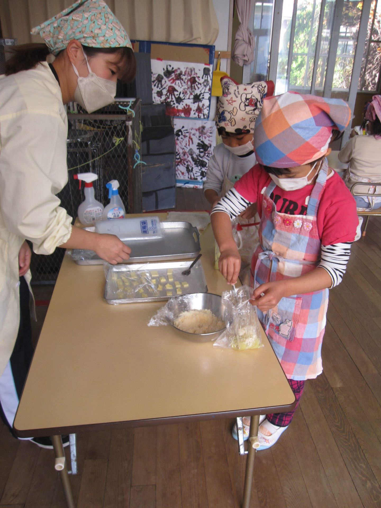 収穫した🍠さつまいもを焼きいも会で食べました。まだまだ、残っている🍠さつまいもでスイートポテトを作ることに・・。保育園のお友だちに食べてもらう前に5歳児おひさま組さんで試作を行いました。