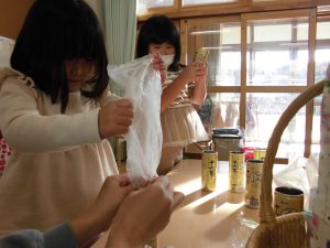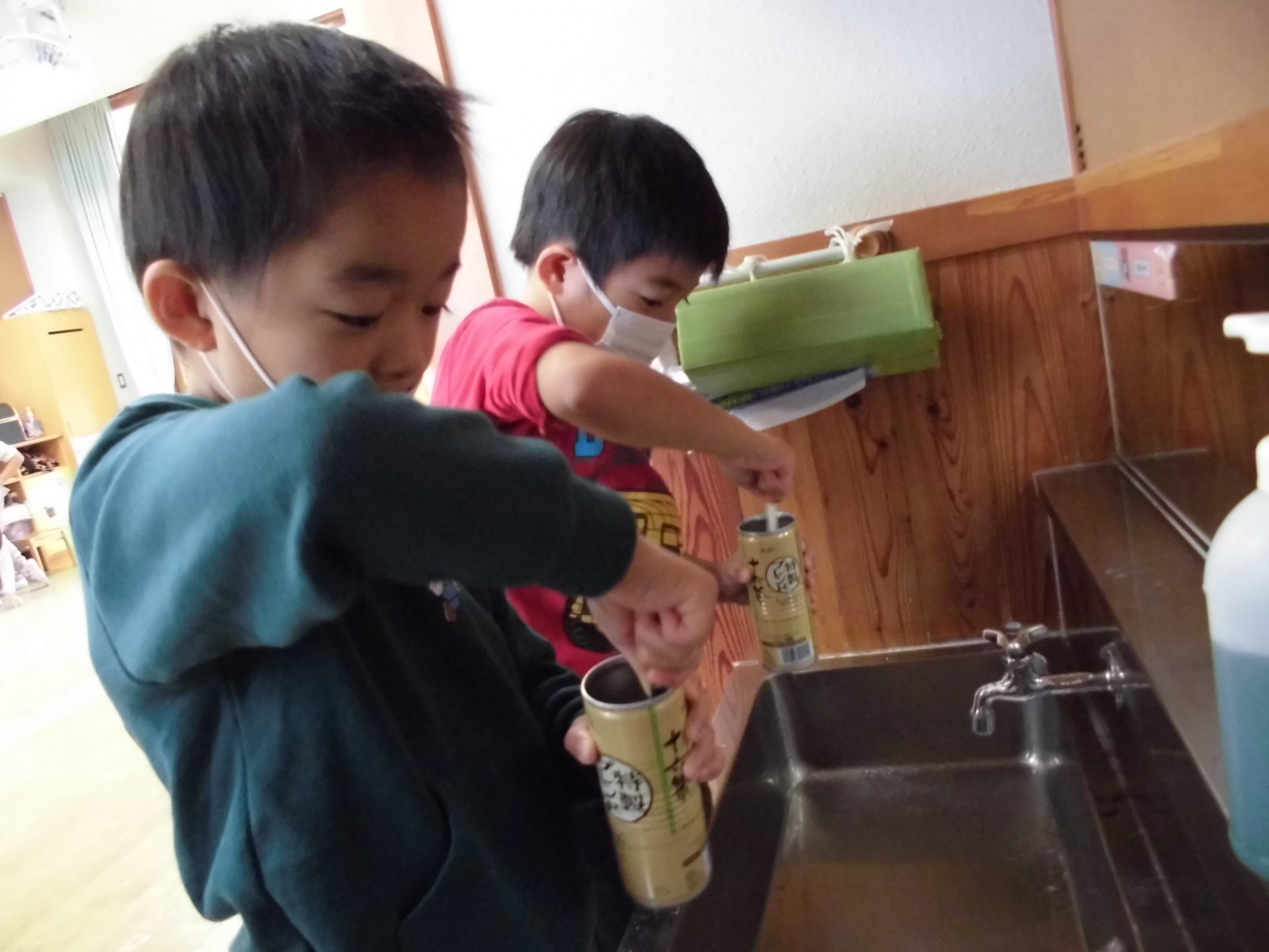 お家から持ってきたお米を【缶】の中に入れよう!