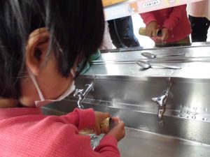 お米をといでみよう!スプーンでグルグル…