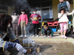 お家と同じお米でも「違う味がするなあ」と飯盒炊爨ならではの味を体験!お米が残らないように大切に食べる気持ちも芽生えていました🌱