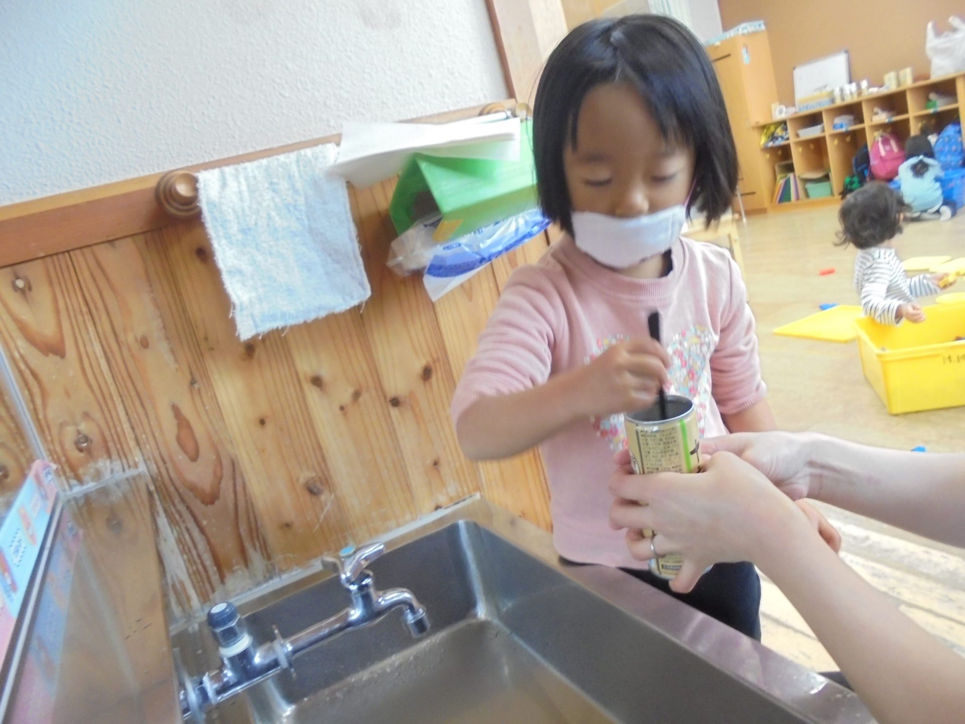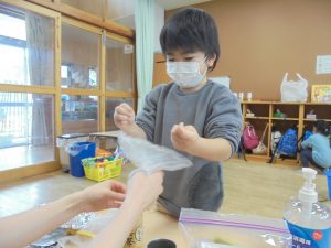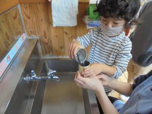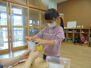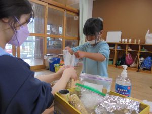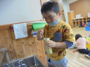 お米を洗う所から自分たちで経験することで、工程の難しさや、研いだ水の色の変化などに気付いた子どもたち。