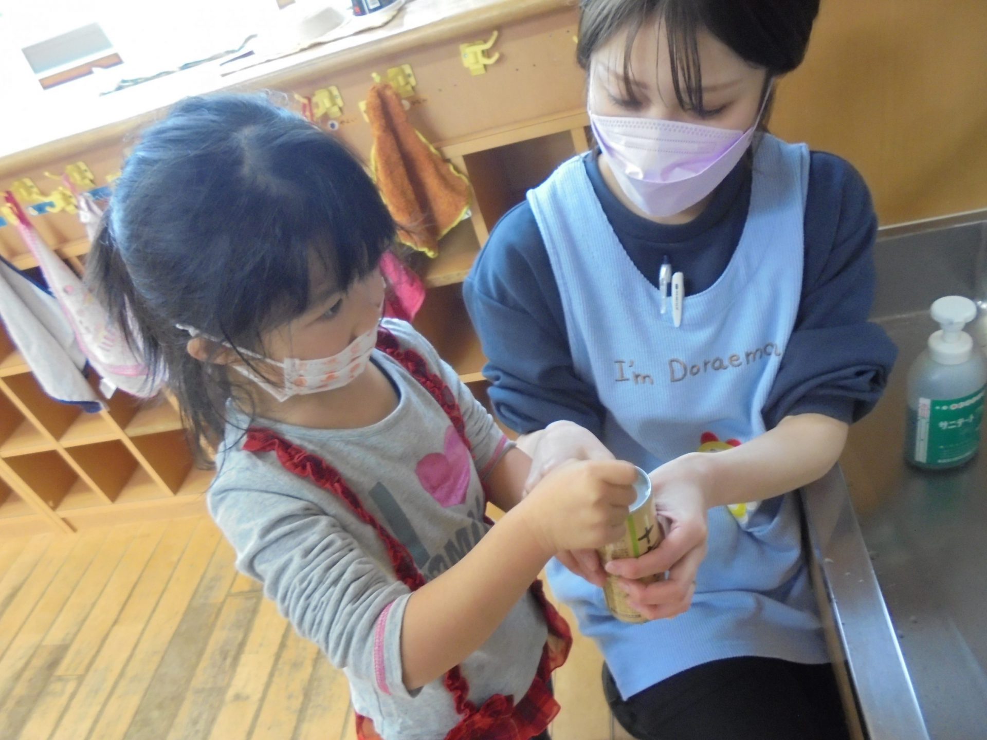 缶にお米を入れて洗うと…