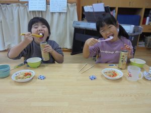 「ほかほか~」「あったかい~」と美味しそうに頬張る子どもたちでした😊