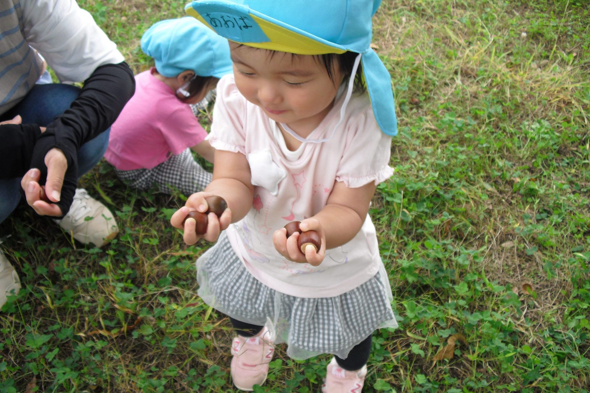 どんぐりを両手にいっぱい拾ったAちゃん。
