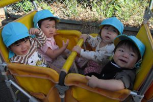 散歩車に乗って、お出かけをしましょう。