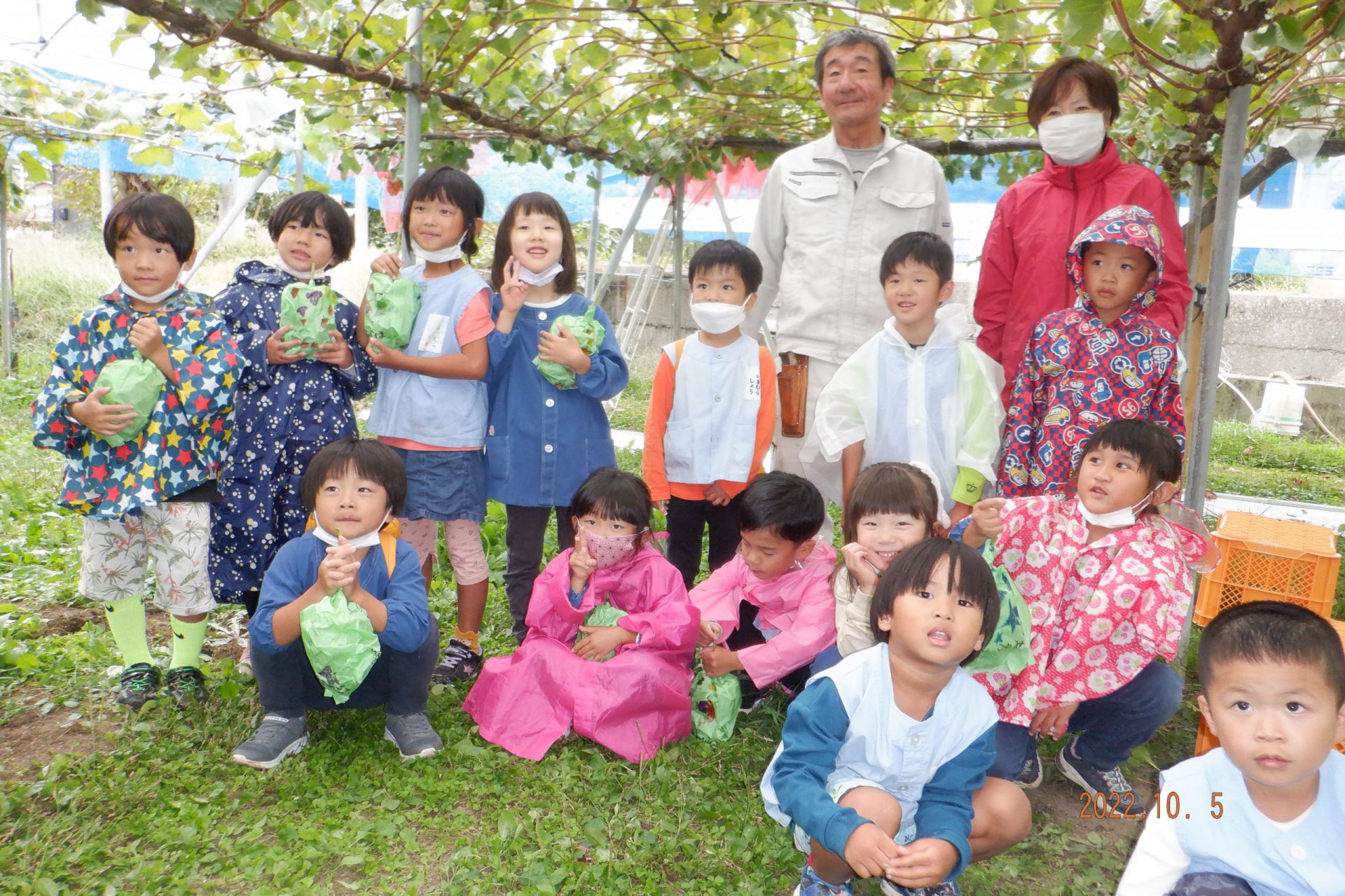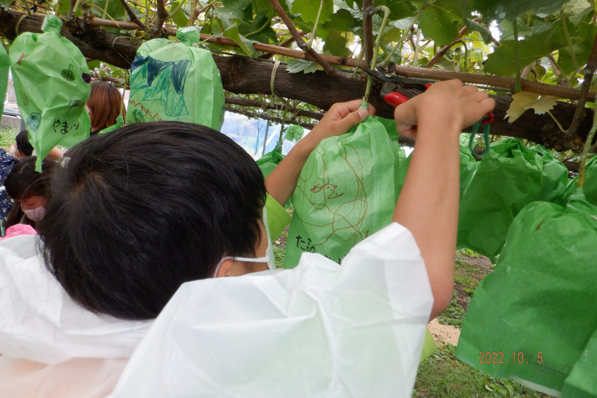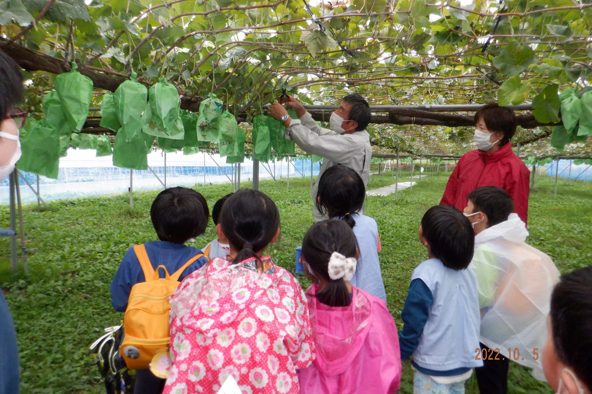 降園時間に迎えに来られたおうちの方も一緒にぶどう畑に行きました。