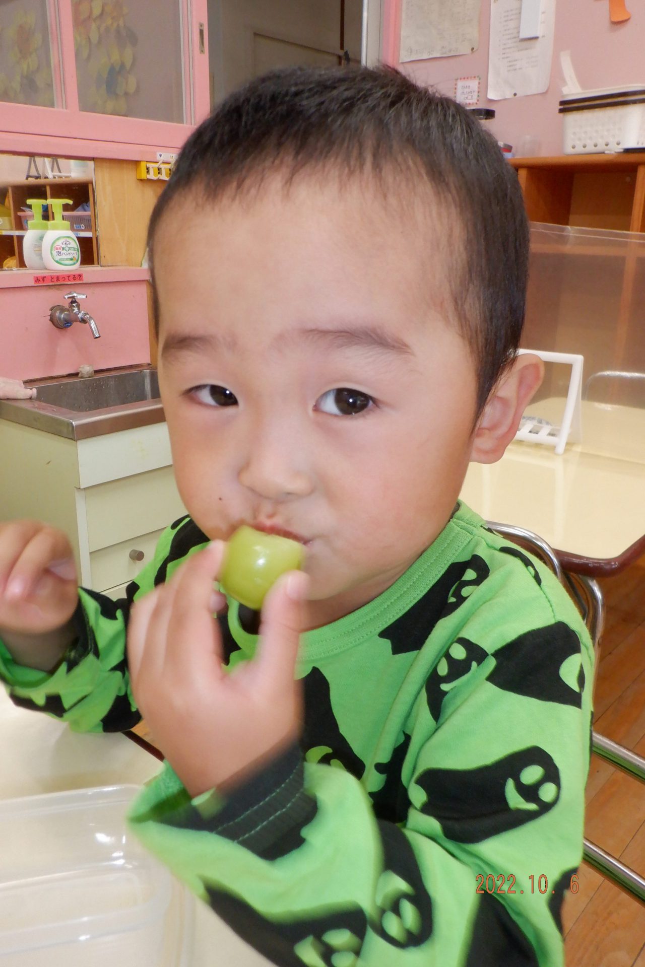 次の日、給食先生がぶどうを給食に出してくれました。