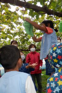 異年齢チームのぶどうも見つけて収穫! 開けてみよう・・・