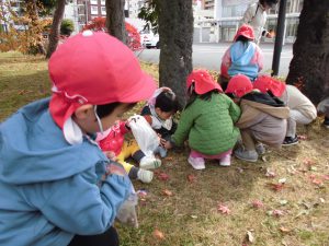 ・子どもたちが見つけた発見に共感しながら、実際に触ってみることで名前や匂い、手触りなども知ることができるように保育しています。