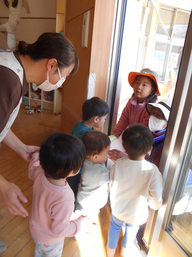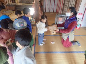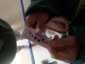 未満児の飴袋も作って大きい人たちが届けに行きました。